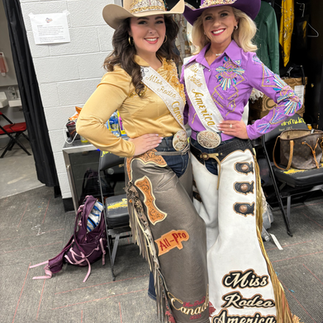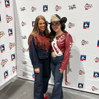 This year, I was deeply honoured to participate in all 10 National Finals Rodeo Grand Entries, alongside Miss Rodeo America, walking on the dirt of the Thomas & Mack each night while proudly representing Canadian Professional Rodeo. This was such a huge honour and an experience that I will always carry with me!