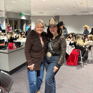 While in Vegas, I also had the opportunity to reconnect with many of my generous sponsors, including Wrangler, Double D Ranchwear,Dan Post Boots, Fellowship of Christian Cowboys, Montana Silversmiths, and Barry Lammle of Lammle’s Western Wear, who so kindly invited Miss Rodeo America and me to visit his suite. Thank you to Cheryl Daines (MRC1988) and Jeff Chadwick (Wrangler) for the amazing rodeo tickets. These moments of connection and gratitude meant the world to me and reminded me how blessed I have been to be supported by such an incredible community.